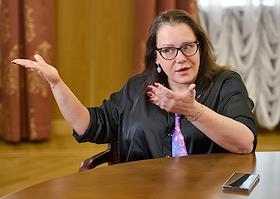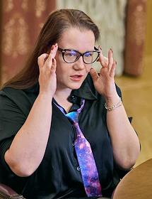 Руководитель объединенной пресс-службы судов Санкт-Петербурга Дарья Лебедева во время интервью.
