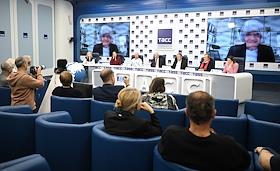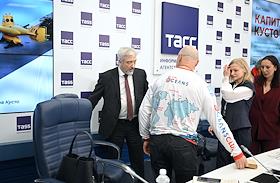 Пресс-конференция, посвященная выставке "Капитан Кусто в России" в пресс-центре ТАСС.