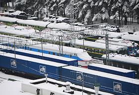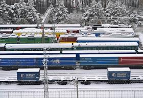 Виды Новосибирска после снегопада. Жанровая фотография. Железнодорожные составы на запасных путях…