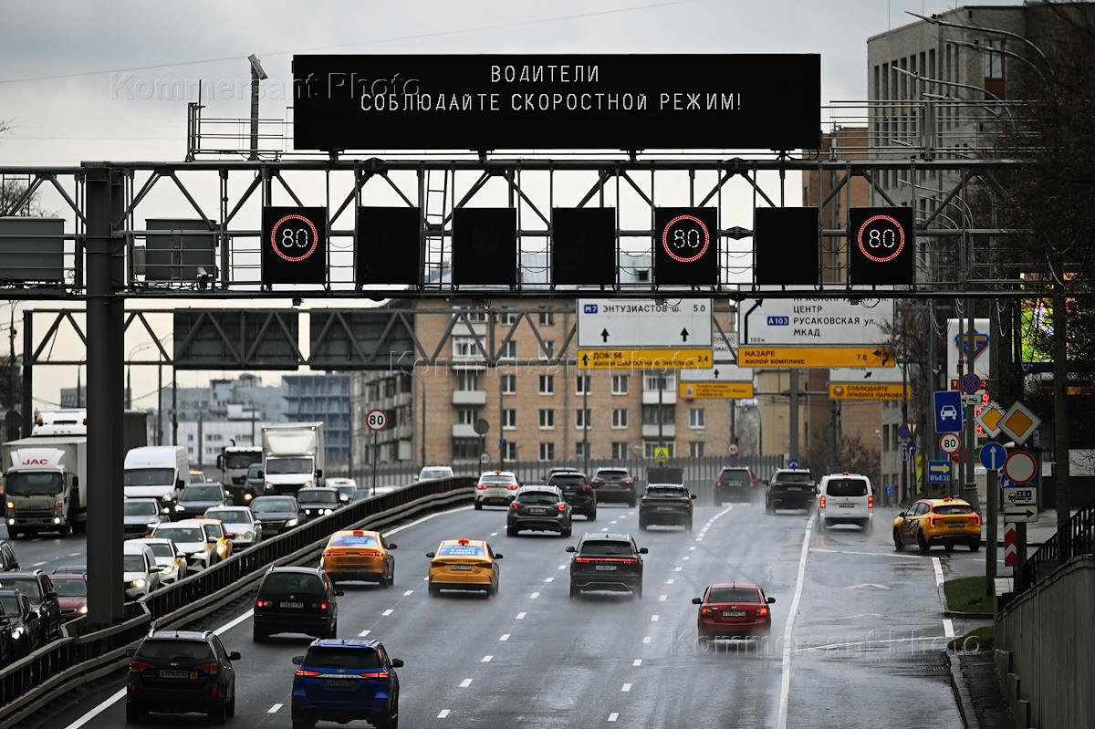 Жанровая фотография. Знаки переменной информации, предупреждающее табло на участке скоростной…