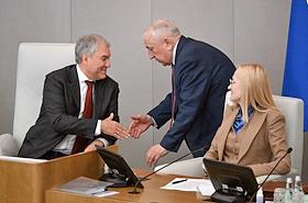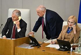 Пленарное заседание Государственной думы (ГД) России. Слева направо: председатель ГД России Вячеслав…