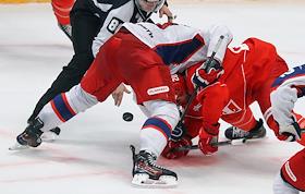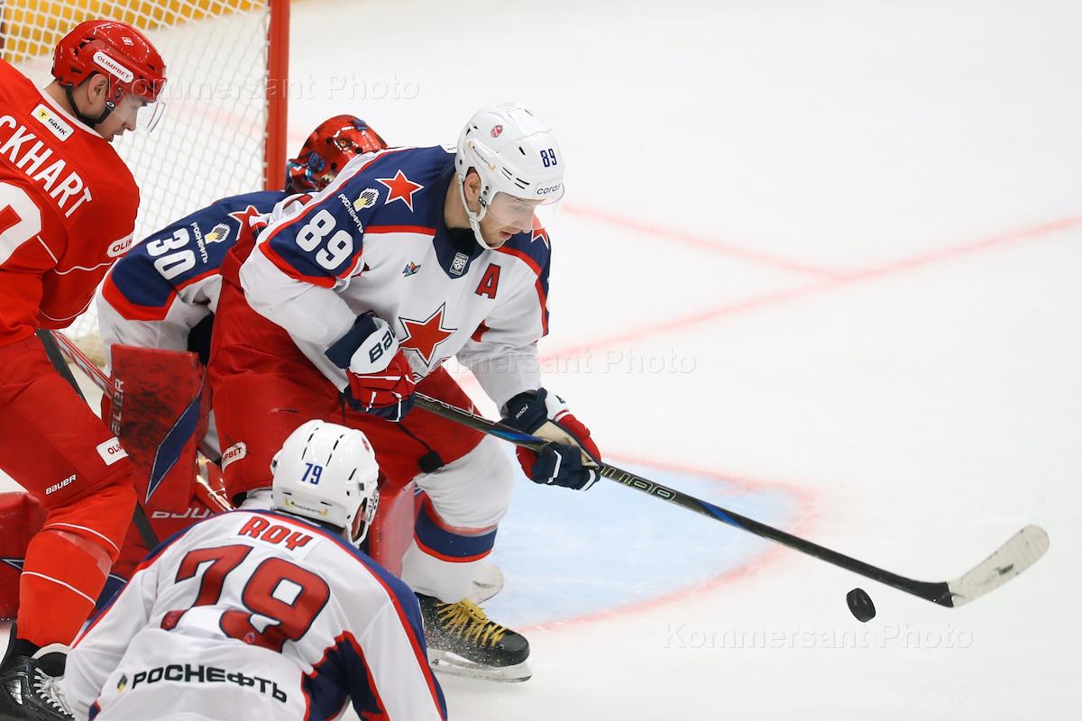 Континентальная Хоккейная Лига (КХЛ). Матч между командами "Спартак" - ЦСКА (Москва) на стадионе…