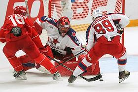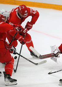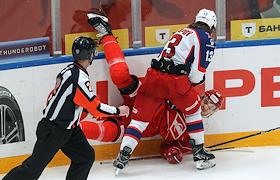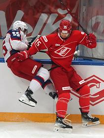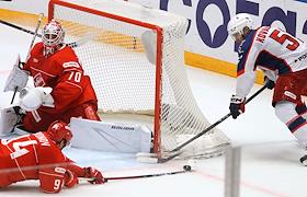 Континентальная Хоккейная Лига (КХЛ). Матч между командами "Спартак" - ЦСКА (Москва) на стадионе "Мегаспорт".