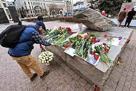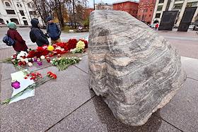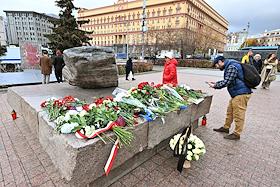 Акции в преддверии Дня памяти жертв политических репрессий. Возложение цветов к Соловецкому камню.