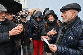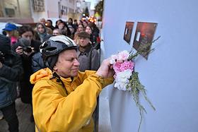 Общество Акции в преддверии Дня памяти жертв политических репрессий. Возложение цветов к Соловецкому камню. Установка дубликатов табличек "Последнего адреса" по адресу Ананьевский пер, дом 5, строение 4 и чтение имён.