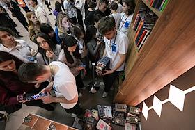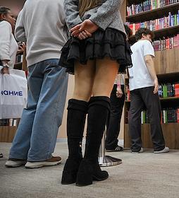 Просветительский марафон "Знание.Наука" в Национальном центре "Россия". Жанровая фотография. Полки с…