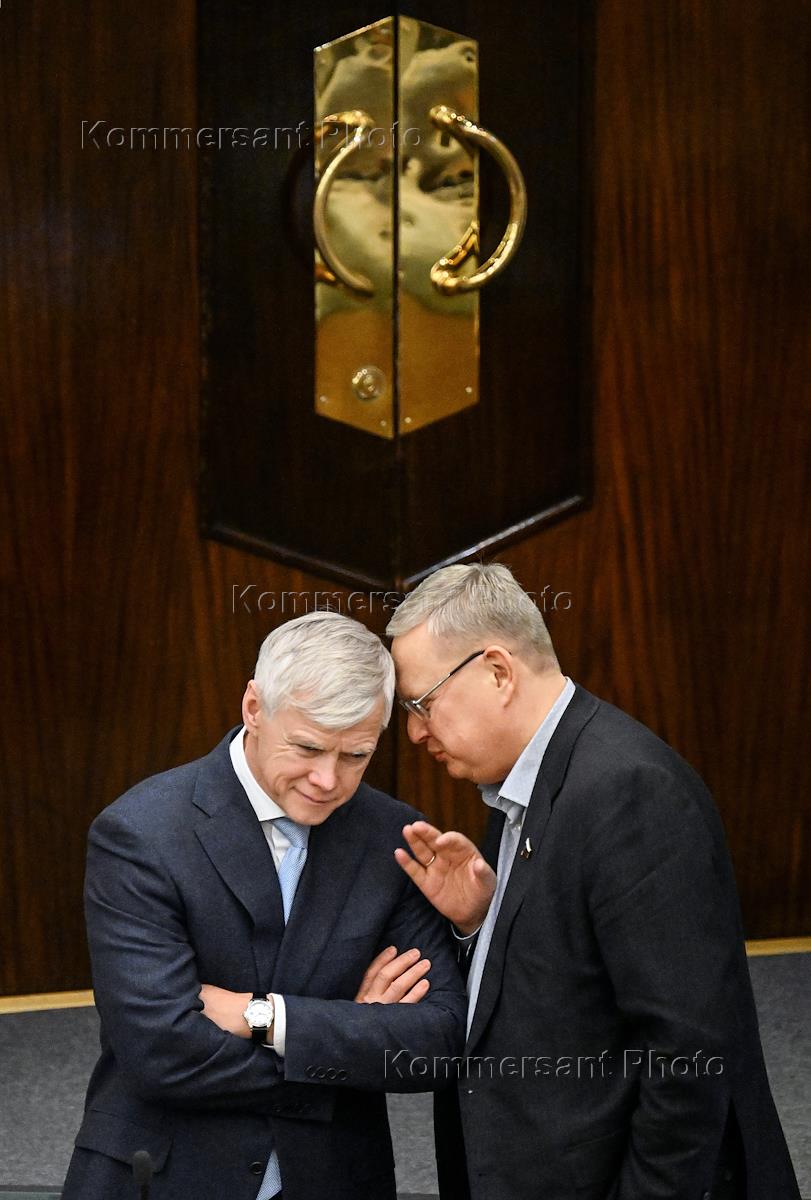 Пленарное заседание Государственной думы (ГД) России. Министр финансов России Антон Силуанов (слева)…
