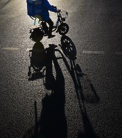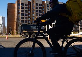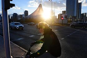 Виды Астаны. Жанровая фотография. Курьер на велосипеде.