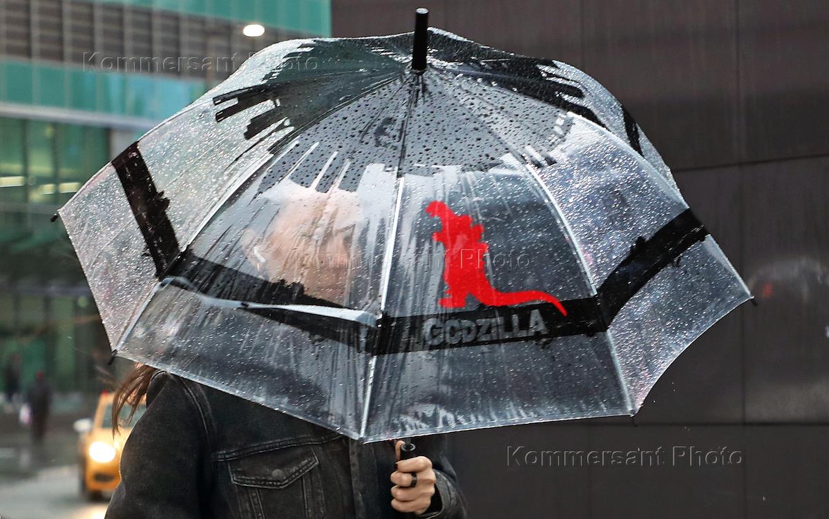 Жанровые фотографии. Сильный дождь и ветер в Москве.