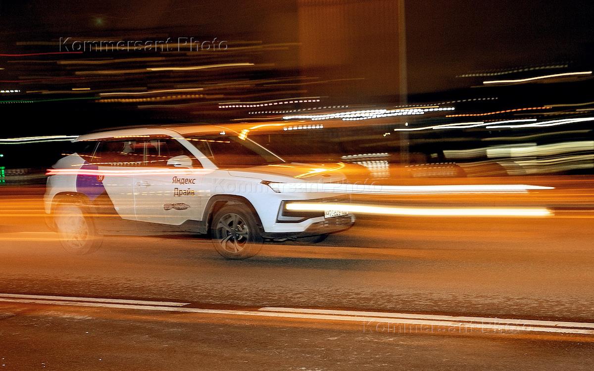 Виды Санкт-Петербурга. Жанровая фотография. Автомобиль сервиса "Яндекс драйв" во время движения по…