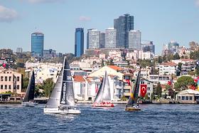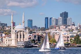 Виды Стамбула. Жанровая фотография. Парусная яхта в проливе Босфор.