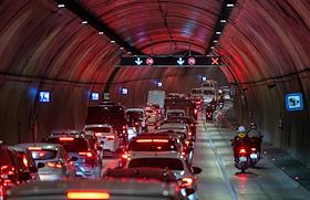 Виды Стамбула. Жанровая фотография. Плотно дорожное движение в туннеле во время часа пик.