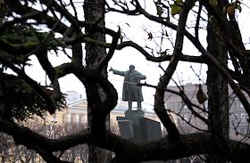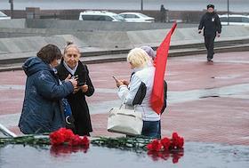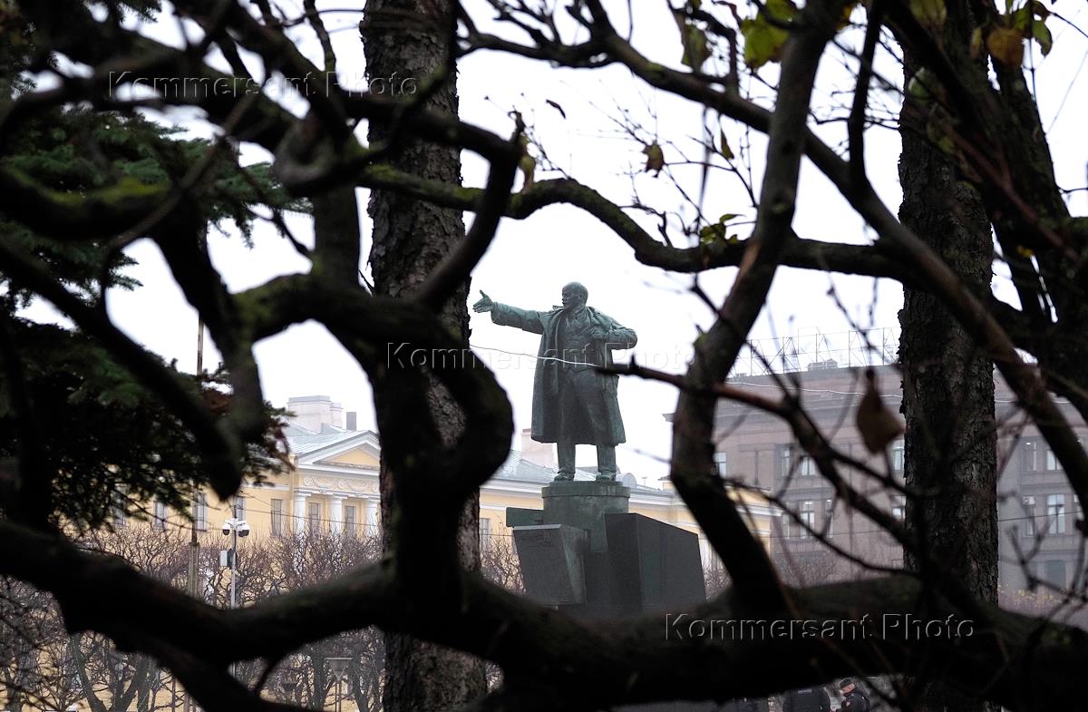 Общество Празднование 7 ноября сторонниками КПРФ в честь 102-й годовщины Октябрьской социалистической революции на площади Владимира Ленина у Финляндского вокзала.