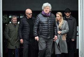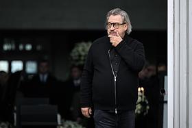 Церемония прощания с телеведущим Юрием Николаевым на Троекуровском кладбище. Певец Юрий Антонов (в…