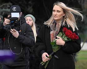 Церемония прощания с телеведущим Юрием Николаевым на Троекуровском кладбище. Певица Анита Цой на…