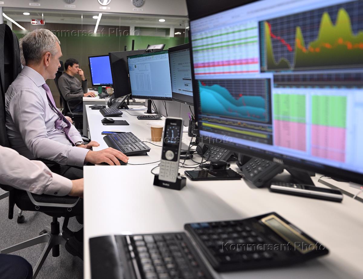 Работа брокерской конторы инвестиционной компании "Цифра брокер". Жанровая фотография.