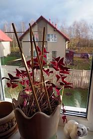Золотая осень в посёлке Новая Ижора. Жанровая фотография. Комнатное растение кислица в горшке на…