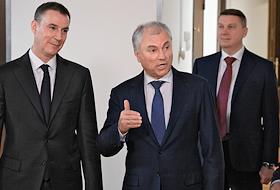 Пленарное заседание Государственной думы (ГД) России. Слева направо: председатель ГД России Вячеслав…