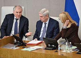 Пленарное заседание Государственной думы (ГД) России. Слева направо: заместитель председателя…