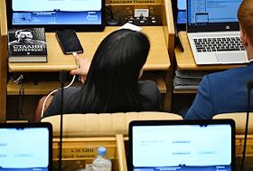 Пленарное заседание Государственной Думы (ГД) России. Депутаты ГД России во время заседания.