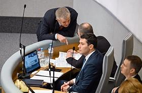 Пленарное заседание Государственной Думы (ГД) России. Слева направо: член комитета ГД России по…