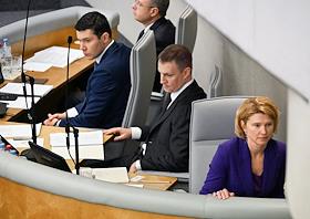 Пленарное заседание Государственной Думы (ГД) России. Слева направо: заместитель председателя…