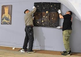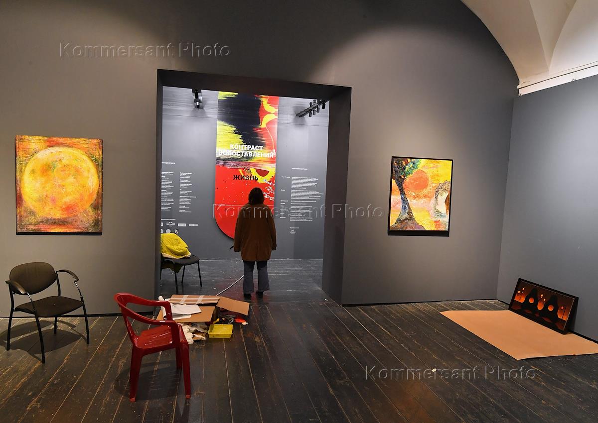 Культура Монтаж выставки «ЧЕЛОВЕК – ЖИЗНЬ – ВСЕЛЕННАЯ. КОНТРАСТ СОПОСТАВЛЕНИЙ». Межмузейный проект, организованный к 10-летнему юбилею Музея искусства Санкт-Петербурга ХХ-ХХI веков (МИСП).