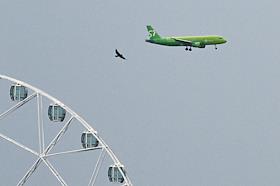Жанровая фотография. Самолет авиакомпании S7 в небе.