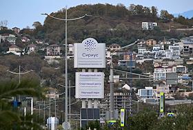 Виды Сочи. Жанровая фотография. Вывеска "Сириус. Концертный зал. Спортивный центр. Научный парк" на…