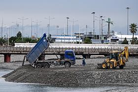 Виды Сочи. Жанровая фотография. Работы по насыпке грунта на берегу реки.