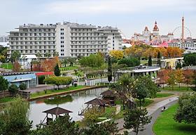 Виды Сочи. Жанровая фотография. Гостинично-оздоровительный комплекс "Сочи Парк Отель" в Олимпийском…