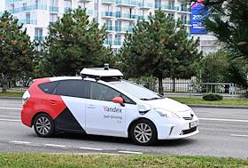Виды Сочи. Жанровая фотография. Беспилотный автомобиль ( Yandex self-driving car) на улице города.