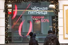 Жанровая фотография. Витрина магазина с надписью "Черная пятница. Скидки до 50%".