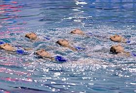 Кубок России по синхронному плаванию во Дворце спорта "Автотор Арена". Командное выступление…