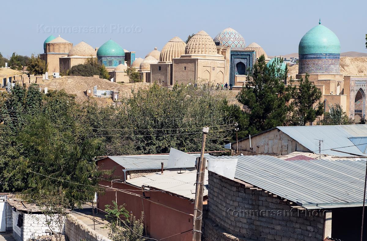 Виды Самарканда. Жанровая фотография. Вид на Ансамбль мавзолеев Шахи Зинда.