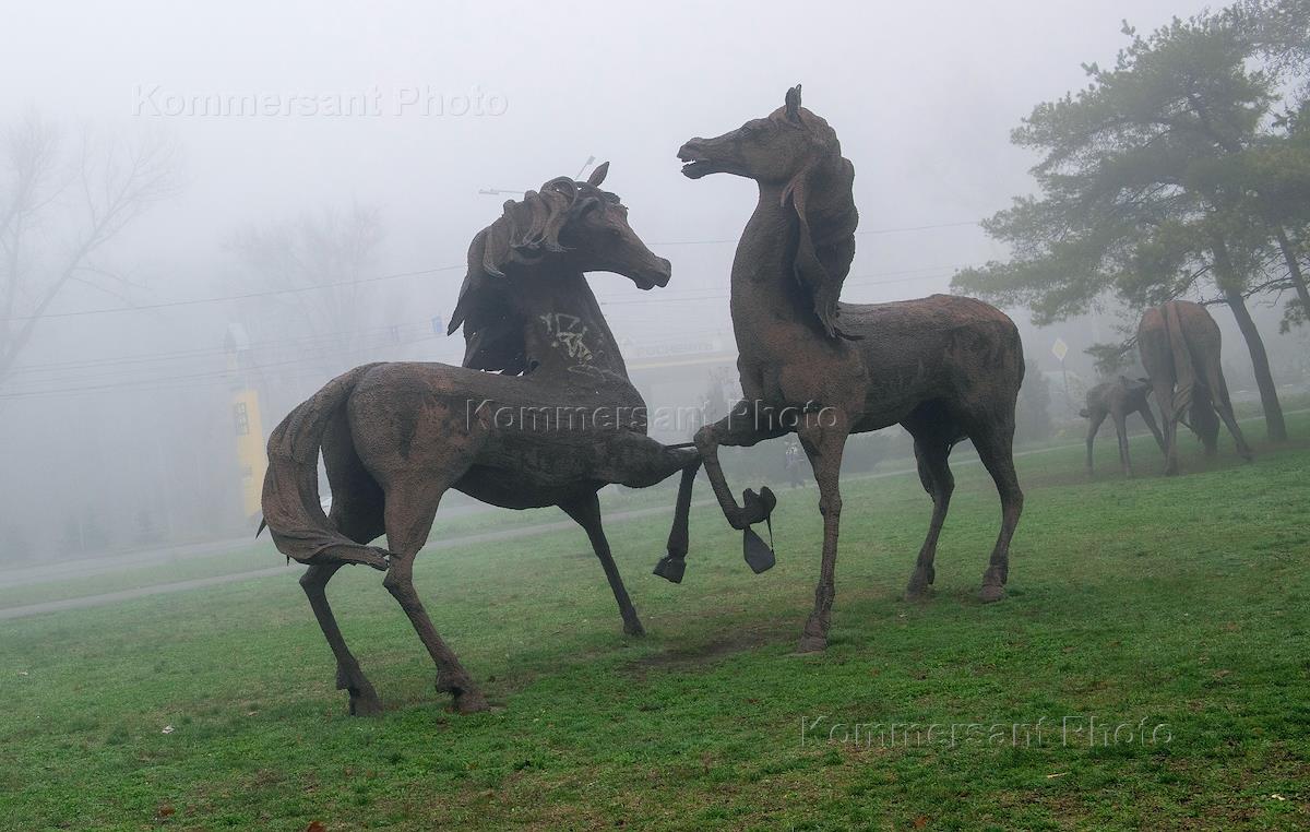 Виды Ростова-на-Дону. Жанровая фотография. Скульптура "Лошади" на проспекте Шолохова.