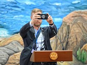Государственный визит президента России Владимир Путина в Киргизию. Представители российских СМИ в…
