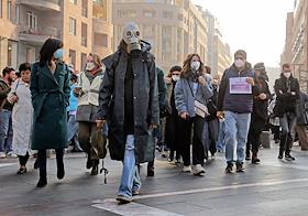 Митинг-шествие "Ереван за чистый воздух" в Ереване. Участники во время шествия по улицам города.