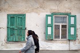 Виды Оренбурга. Окна со ставнями в исторической застройке города.