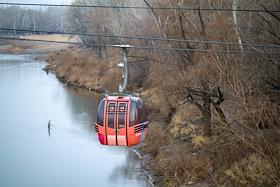 Виды Оренбурга. Канатная дорога через реку Урал.