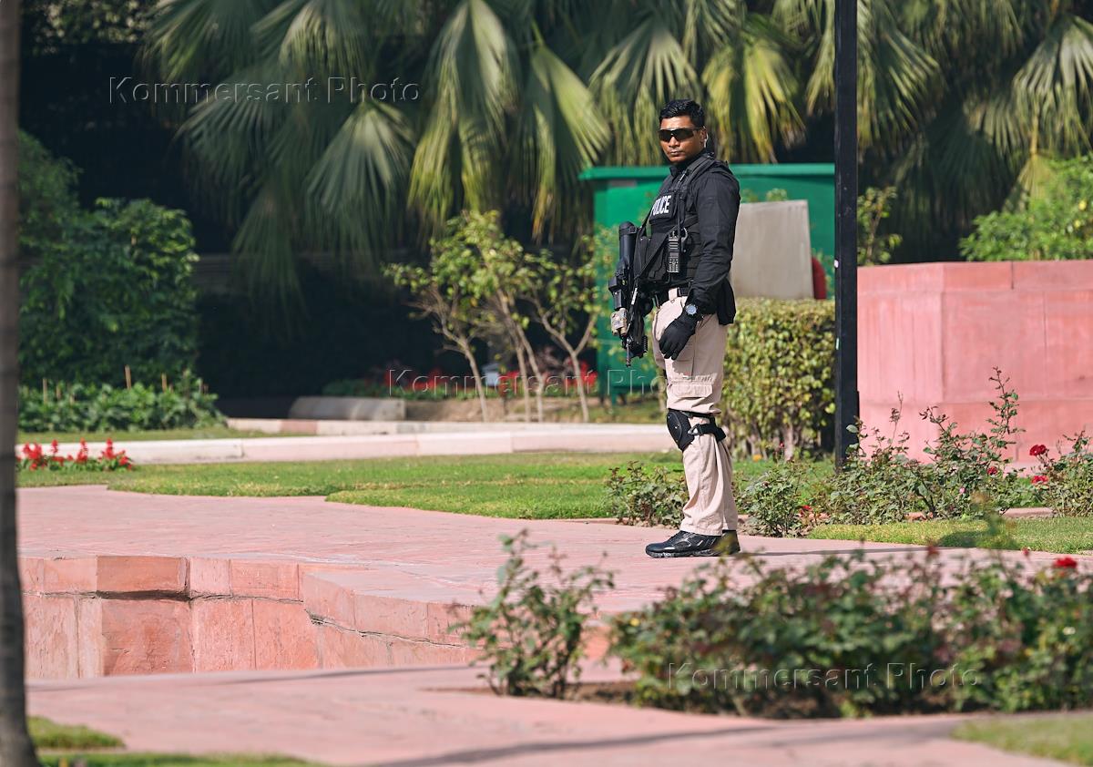 Государственный визит президента России Владимира Путина в Индию. Жанровая фотография. Сотрудник…