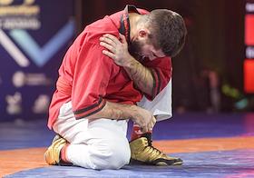 Кубок России по поясной борьбе "корэш" 2025 года во дворце единоборств "Ак Барс". Участник во время…