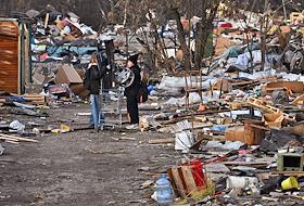 Жанровая фотография. Снос гаражей на углу улицы Голубинской и проезда Карамзина.