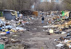Снос гаражей на углу улицы Голубинской и проезда Карамзина. Жанровая фотография. Территория…