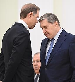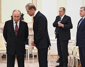 Президент России Владимир Путин (слева), первый заместитель председателя правительства России Денис…