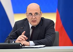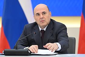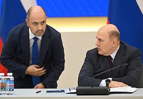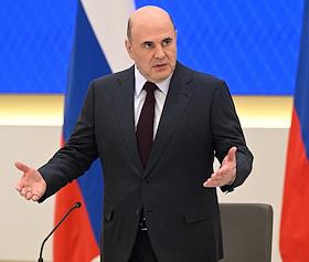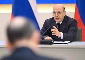 Председатель правительства России Михаил Мишустин (в центре), министр промышленности и торговли…