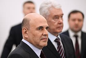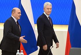 Председатель правительства России Михаил Мишустин (слева) и мэр Москвы Сергей Собянин (справа) во…