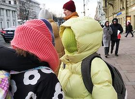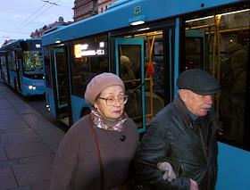 Жанровая фотография. Пассажиры на остановке общественного транспорта на Невском проспекте.