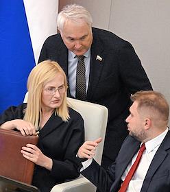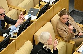 Пленарное заседание Государственной думы (ГД) России. Слева направо: член комитета ГД России по…