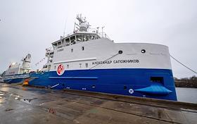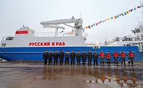 Церемония поднятия флага на новом краболовном судне "Александр Сапожников" для группы компаний "Русский краб".